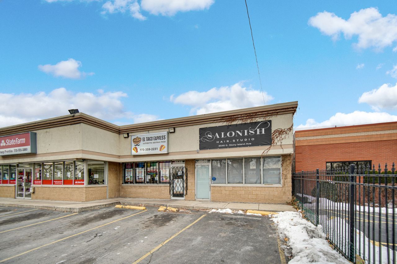 Prime retail space for lease at 8546 S Stony Island Ave, Chicago, IL 60617, offering approximately 1,120 SF of move-in-ready storefront space along one of Chicago's most established South Side commercial corridors. This highly visible location fronts Stony Island Avenue, a major north-south arterial carrying approximately 30,000+ vehicles per day, providing excellent brand exposure and daily traffic counts attractive to both local operators and regional or national users. The space was previously built out as a salon and features a modern, second-generation layout with high ceilings, exposed ductwork, upgraded lighting, multiple service areas, existing plumbing, and a contemporary interior design that significantly reduces build-out time and upfront capital. The efficient footprint supports a wide range of retail, service, wellness, medical, and professional office-retail uses. The property is zoned Chicago B3-2 (Community Shopping District), allowing for broad commercial flexibility including retail, service, office, and select food uses. Shared on-site parking is available directly in front of the space, with additional street parking nearby, supporting customer convenience and repeat visitation. The site offers excellent accessibility with CTA bus routes running directly along Stony Island Avenue, providing strong public transportation access for employees and customers. The property is minutes from major east-west corridors including 87th Street and 79th Street, and provides convenient access to I-90/I-94 (Chicago Skyway), allowing efficient regional connectivity. Located near Jackson Park, Rainbow Beach, and the Lake Michigan shoreline, and benefiting from continued public and private investment on Chicago's South Side including the Obama Presidential Center, this corridor continues to attract service-oriented retail and professional users seeking stable neighborhood demand combined with long-term growth potential. Ideal for wellness concepts, medical or counseling offices, tax or insurance services, boutique retail, cellular or specialty retail, and appointment-based service businesses.